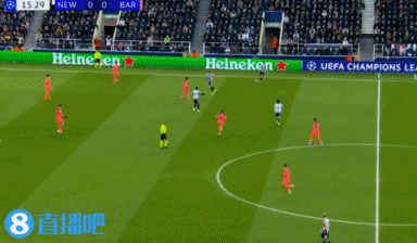 上半场伤停补时1分钟,半场末端,巴萨暂0-0纽卡。