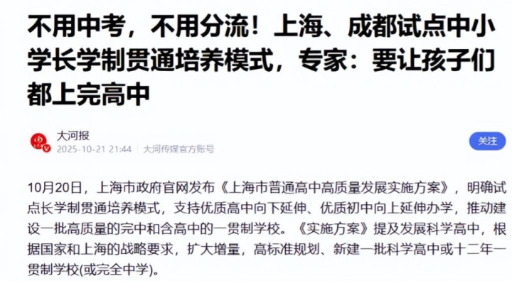比如,上海家庭不仅不错通过就读“中小学一贯制”试点学校,舒缓中考升学压力,还简略在高考时享受英语“考两次选最高分”的容错优待。不外个别裁减升学门槛的翻新案例,激发了许多网友对“学阀”群体的担忧和质疑。