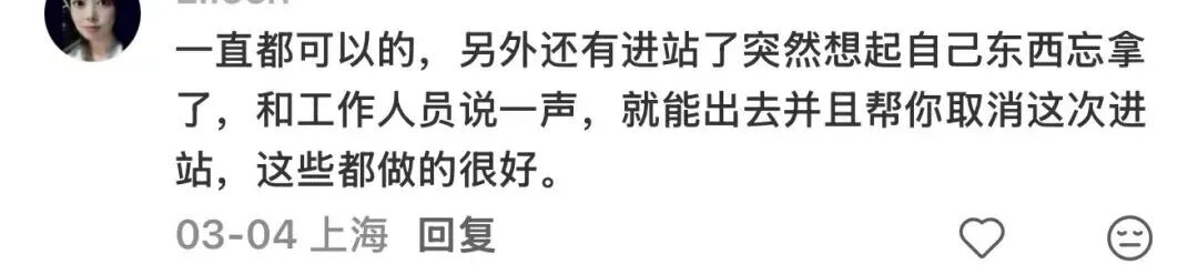 “你不错平直跟咱们责任主说念主员评释情况,通过专用通说念相差,毋庸过闸过安检,要是是上洗手间技艺比拟长的,也不错进站后先去就业台更新一下,再去洗手间。”