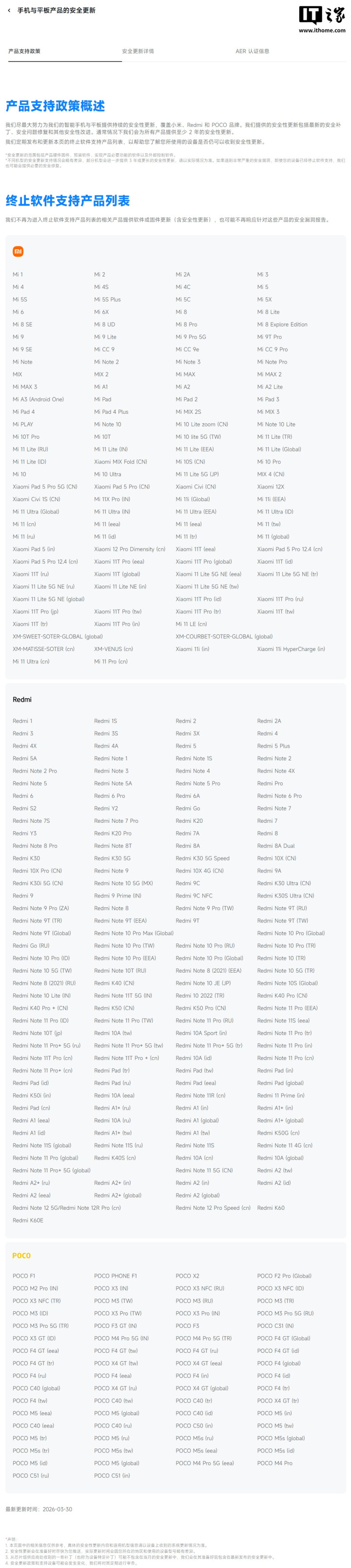 IT之家3月30日音信,小米官网安全中心现更新智能硬件产物阻隔软件援救产物列表。IT之家提防到,智高东说念主机与平板板块披露,RedmiK60和RedmiK60E将住手软件或固件更新(含安全性更新),也可能不再反馈针对这些产物的安全纰缪敷陈。