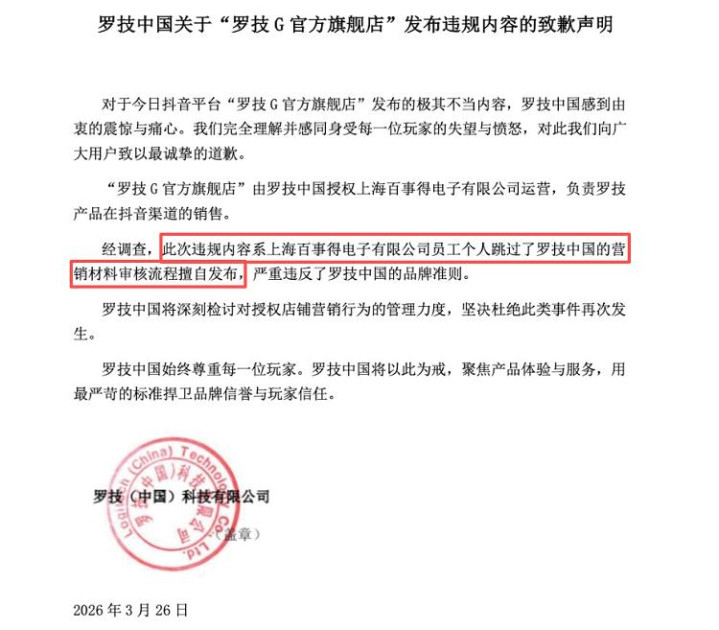 只见说念歉声明里写着“通盘分解每一位玩家的失望与盛怒,致以最真挚的说念歉,九游体育官方网站违纪实质系上海百事得电子有限公司职工个东说念主跳过了罗技中国的营销材料审核经过私行愿布”。