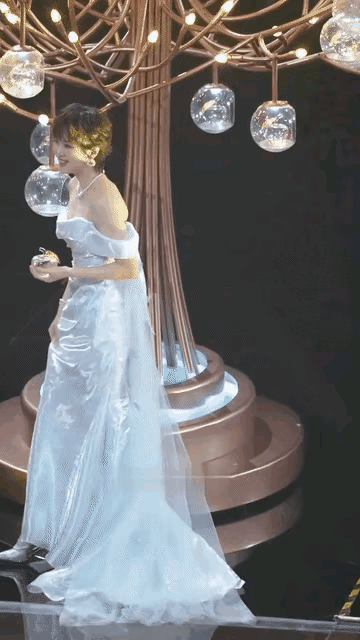姚安娜的裙子,是为她量身定作念,穿着烘托东谈主,清静又高等。