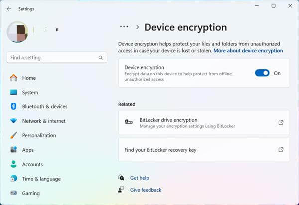 前去“建立”>“更新和安全”>“开拓加密”(或 BitLocker),然后按照教导关闭加密。请务必在禁用加密前备份您的加密密钥。