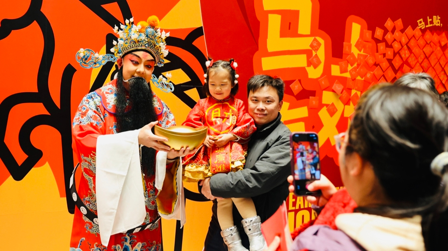 正月初五,恰逢传统“破五”迎财神吉日,上海民族乐团《欢天喜地迎财神》音乐会在YOUNG戏院举行。上演尚未启幕,不雅众大厅已最初变身千里浸式新春游园会,将“年味”拉满。身着大红锦袍、头戴财神帽的“财神爷”穿梭在东说念主群中,拱手送福、温暖合影,每一张笑貌齐承载着对新年的期盼。