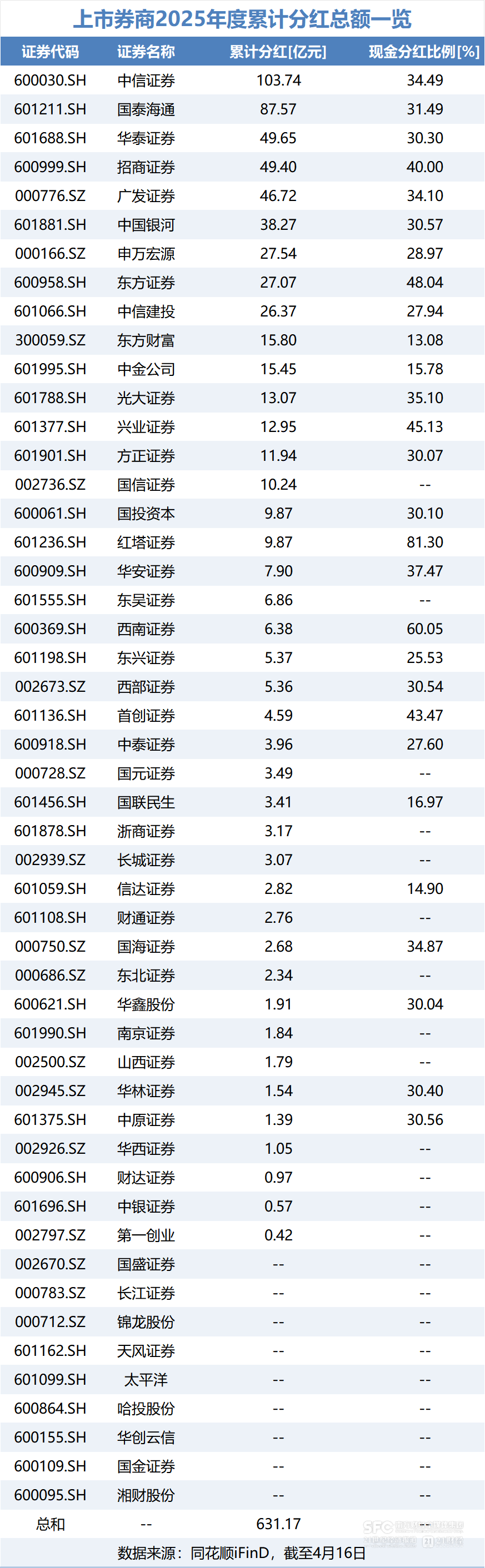 数据裸露,戒指4月16日,2025年全年券商板块累计分成总数达631.17亿元,也曾进步2024全年之和553.98亿元,创下频年分成限制新高。
