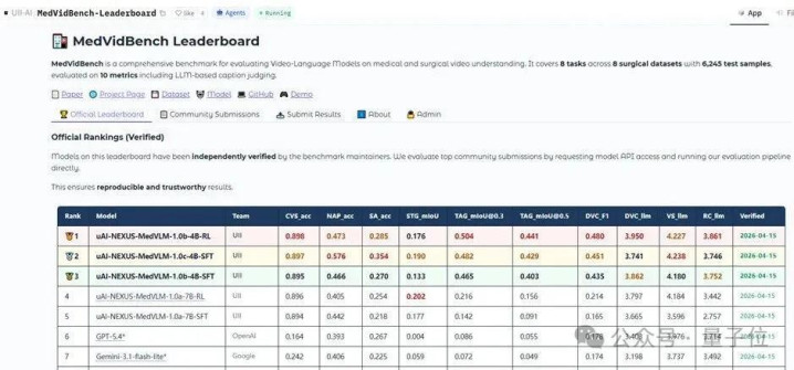 这支研发团队不思唱独角戏,上线了医疗视频通晓大模子榜单,面向全寰宇建筑者发出挑战。